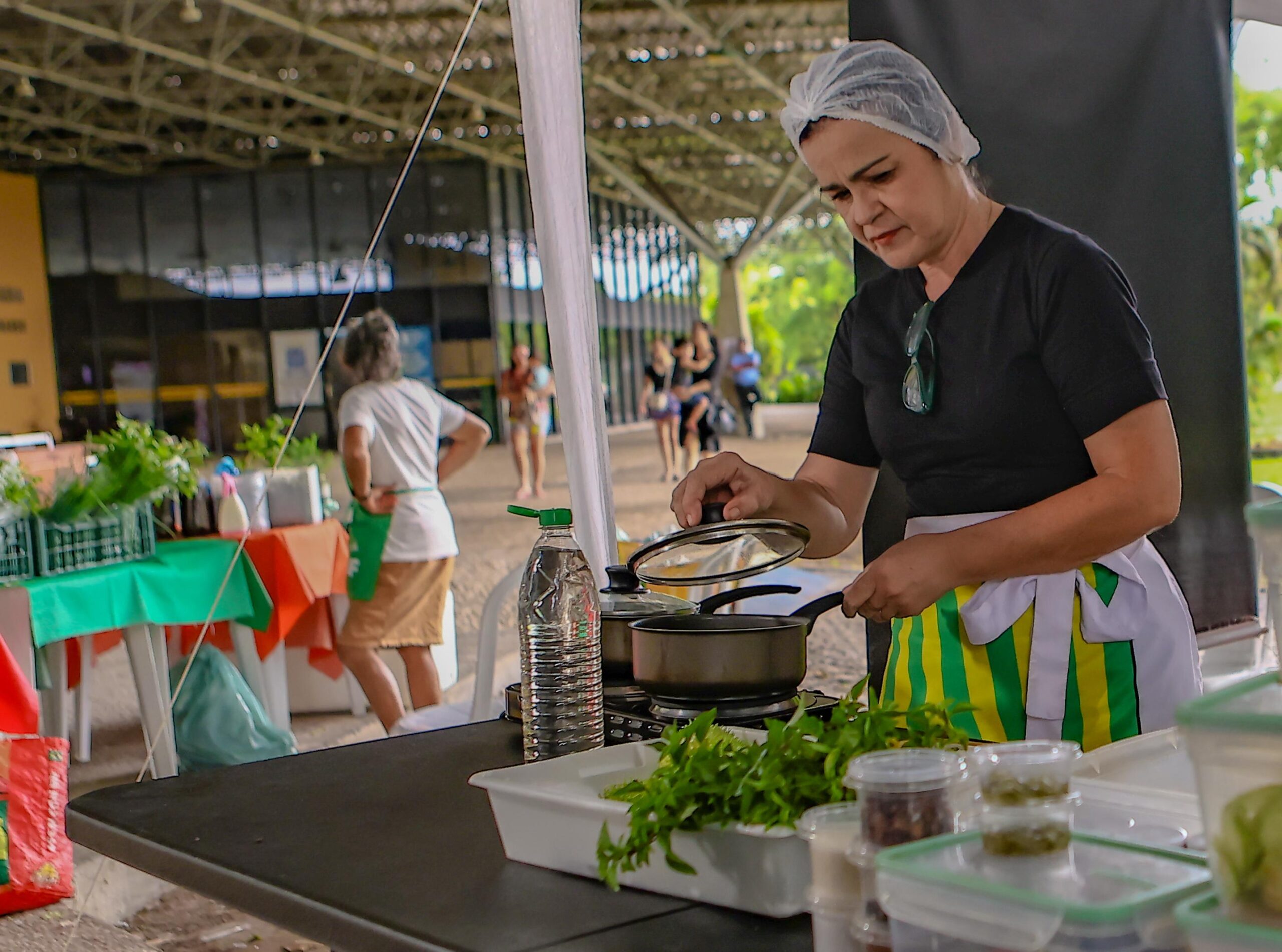 A Quitanda da Agricultura Familiar deste domingo (23) teve uma participação mais que especial: a chefe de cozinha Lourena Sérvio, que também é coordenadora do Banco de Alimentos do Piauí. Ela ensinou receitas de como fazer conservas e como fazer o preparo de alimentos para agricultores e também consumidores.