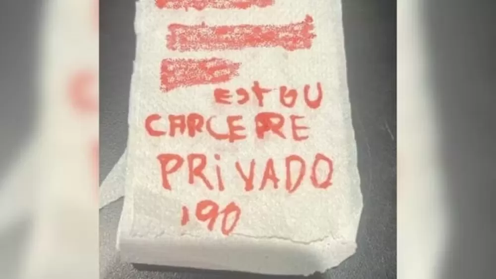 De acordo com a Polícia Militar (PM), a mulher deixou a casa onde estava com o companheiro na noite de sexta-feira (3), dizendo que iria comprar cigarros. No banheiro de uma conveniência, aproveitou o momento para escrever o recado e deixou o papel no local. No bilhete, ela escreveu: "Estou em cárcere privado, 190".
