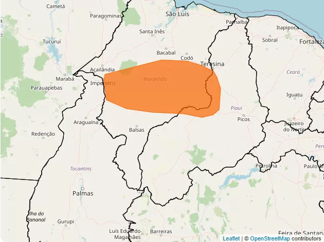 Já o segundo alerta cobre áreas do Maranhão e Piauí, como o Centro-Norte Piauiense, Sudoeste Piauiense, Sudeste Piauiense, além do Oeste, Centro, Leste e Sul Maranhense.
