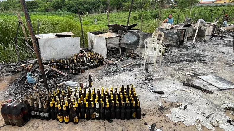 "Não tem residência próxima. É uma quadra de futsal, um ginásio poliesportivo e as barracas foram montadas do lado da quadra. A barraca [onde iniciou o incêndio] era tecida de palha, aí o fogo foi rápido, se arrastou e queimou. As pessoas dizem que foi um curto [circuito]", informou a PM.