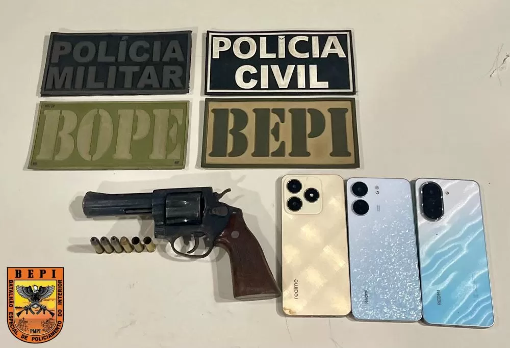 Durante a operação, os policiais apreenderam um revólver, munições e três aparelhos celulares. Todo o material foi encaminhado à Delegacia Seccional de Esperantina, onde foram adotados os procedimentos legais.