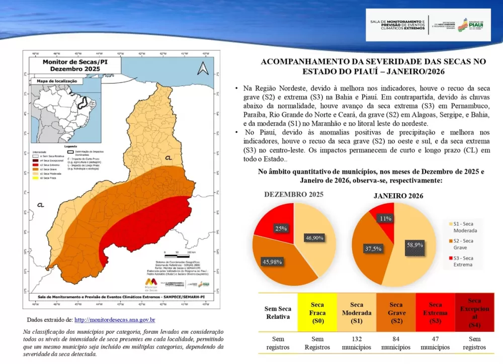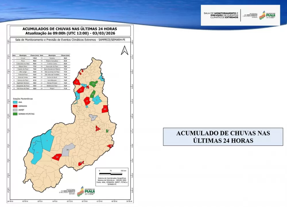 Já o Açude Piracuruca, localizado em Piracuruca, opera com 96% do volume total, aproximando-se do limite máximo. Segundo a Semarh, o cenário é resultado direto do aumento do regime pluviométrico durante a quadra chuvosa.