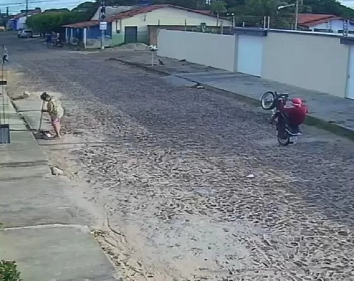 Motociclista afunda em cratera coberta por água em rua no litoral do Piauí